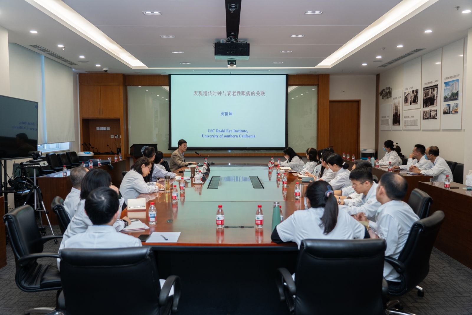 本次启动会特别邀请国际知名学者——美国南加州大学 Roski眼科研究所何世坤教授莅临指导并作专题讲座。何世坤教授以《表观遗传时钟与衰老性眼病的关联》为主题,围绕21世纪生物医学领域前沿研究热点展开深度分享。他系统阐述了衰老研究在全球健康战略中的重要地位,结合眼科领域研究实际,详细剖析了 “建立视网膜衰老时钟” 对衰老性眼病早期预警、精准干预的科学价值与实践意义,并结合国际顶尖研究动态,为医院科研人员提供了针对性的申报建议与学术指导。讲座内容兼具前沿性与实用性,引发在场人员的深度思考与广泛共鸣,为科研人员拓宽研究视野、明晰申报方向提供了重要启发。