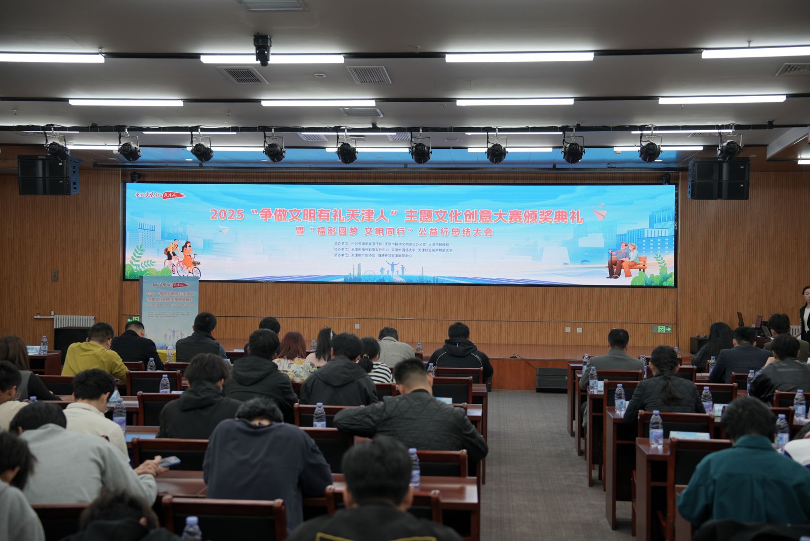 2025“争做文明有礼天津人”主题文化创意大赛颁奖典礼暨“福彩圆梦 文明同行”公益行总结大会成功举办。活动以文化为桥、以创意为媒、以公益为魂,集中展示了天津精神文明建设的丰硕成果,凝聚起全社会共建文明城市、共筑公益生态的强大合力。天津市精神文明建设办公室等相关单位有关领导,以及获奖代表、师生代表、网络达人等齐聚现场,共同见证这一兼具创意活力与公益温度的盛会。