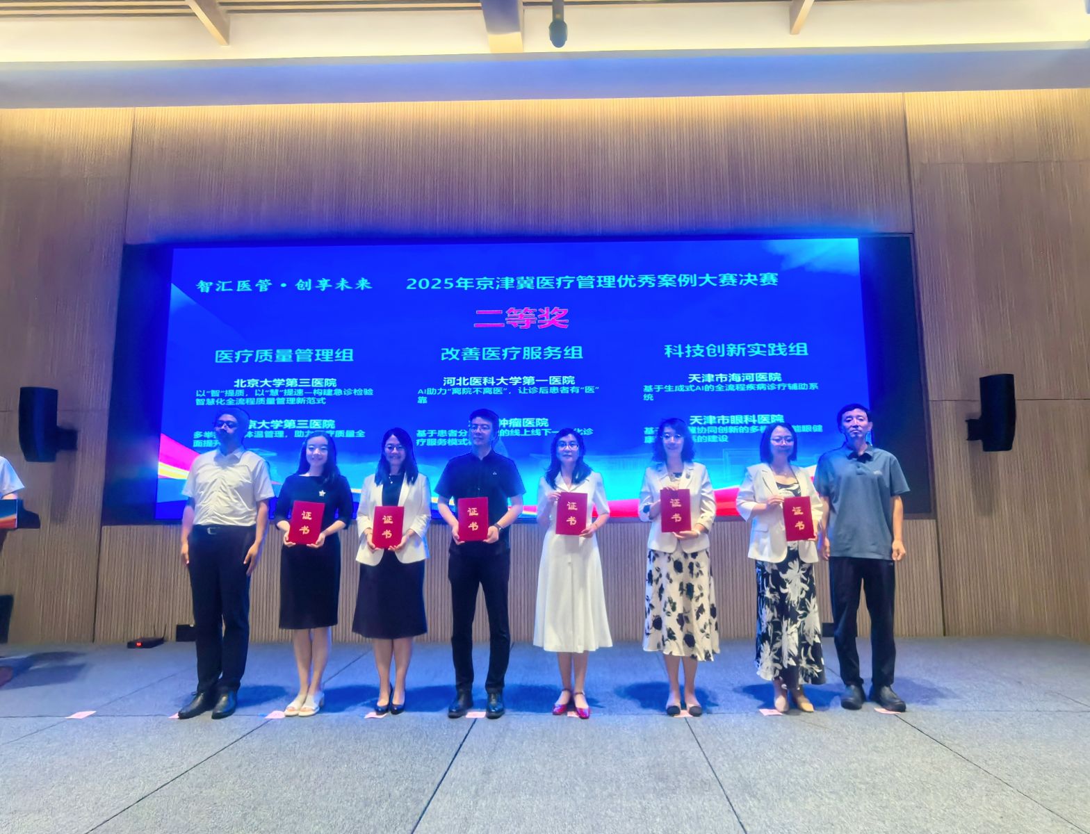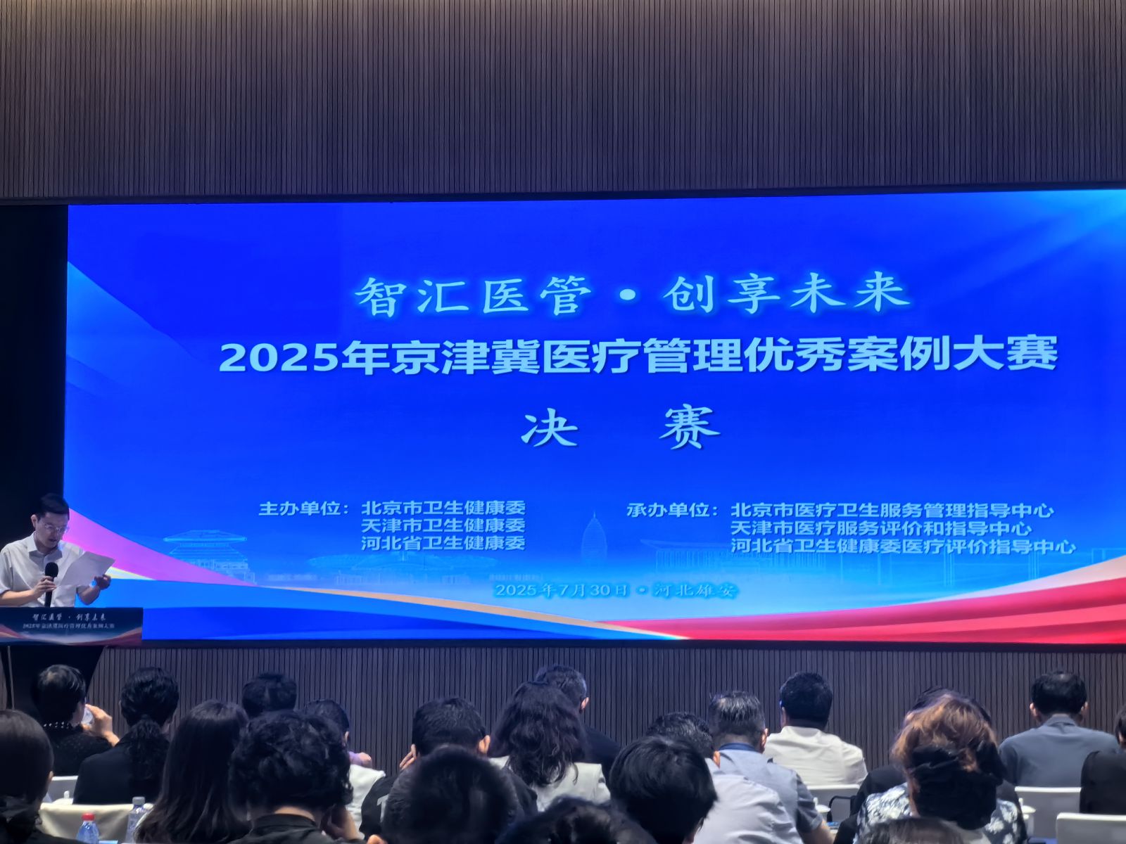 2025年7月30日,由北京、天津、河北三地卫生健康委联合主办的2025年京津冀医疗管理优秀案例大赛决赛在雄安新区圆满落幕。本次大赛以“智汇医管、创享未来”为主题,设置了“医疗质量管理、改善医疗服务、科技创新实践”三个赛道,共收集来自三地182家医院的540个案例,经过初赛遴选,最终有21家医院、36个案例晋级决赛。